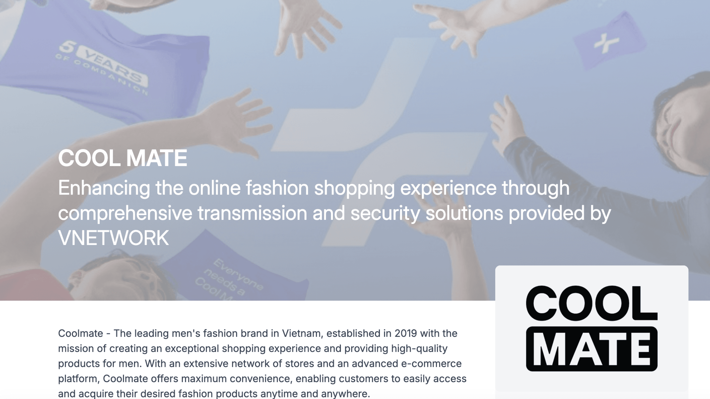 Coolmate is a well-known Vietnamese men's fashion brand operating a direct-to-consumer (D2C) online sales model. During major promotional campaigns, Coolmate's website regularly experienced sudden surges in traffic, which had previously caused issues including slow page loading, delayed product image rendering, and system overloading.